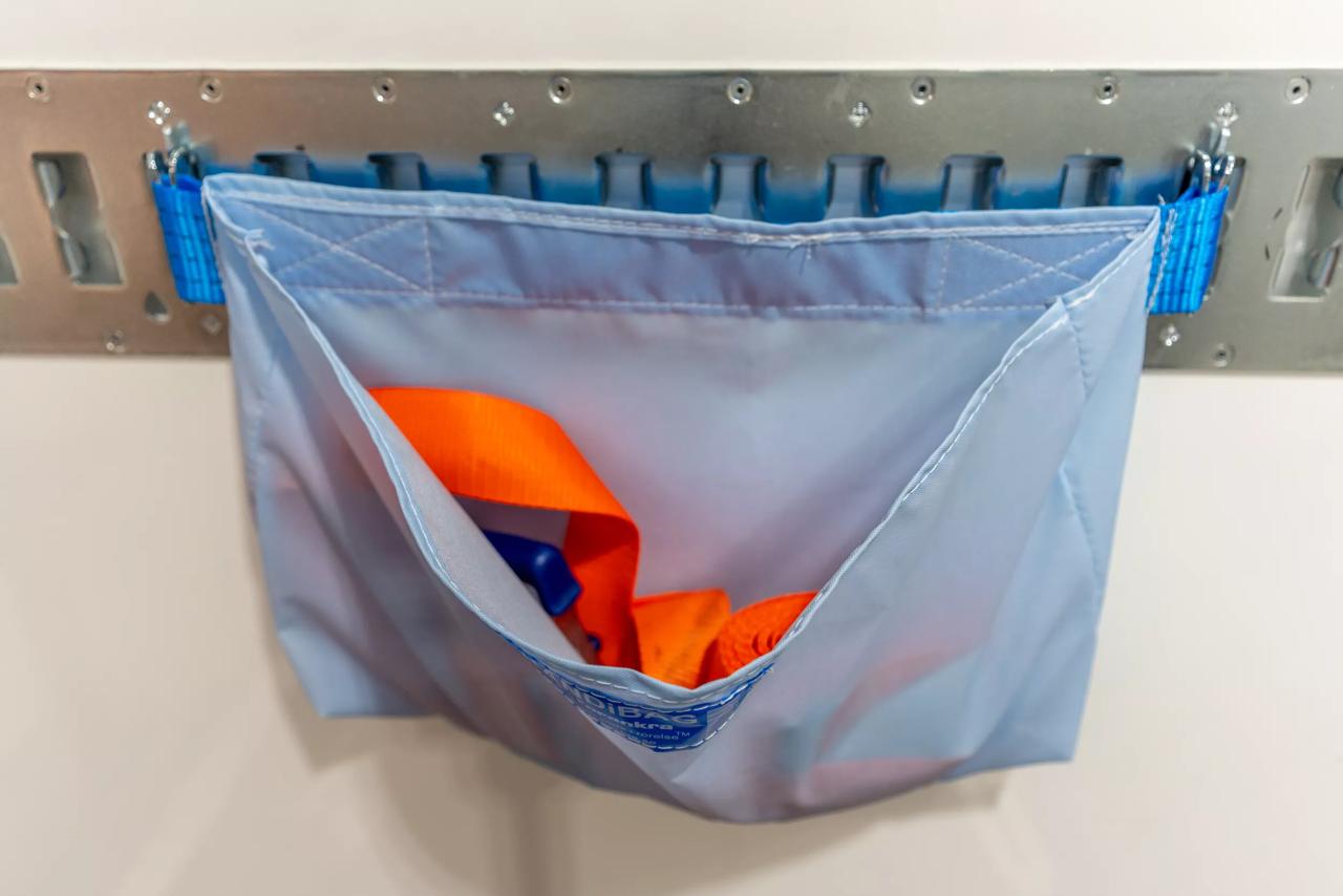 Förvaringsbag som passar combi- och universalskena med plats för spännband och annat.