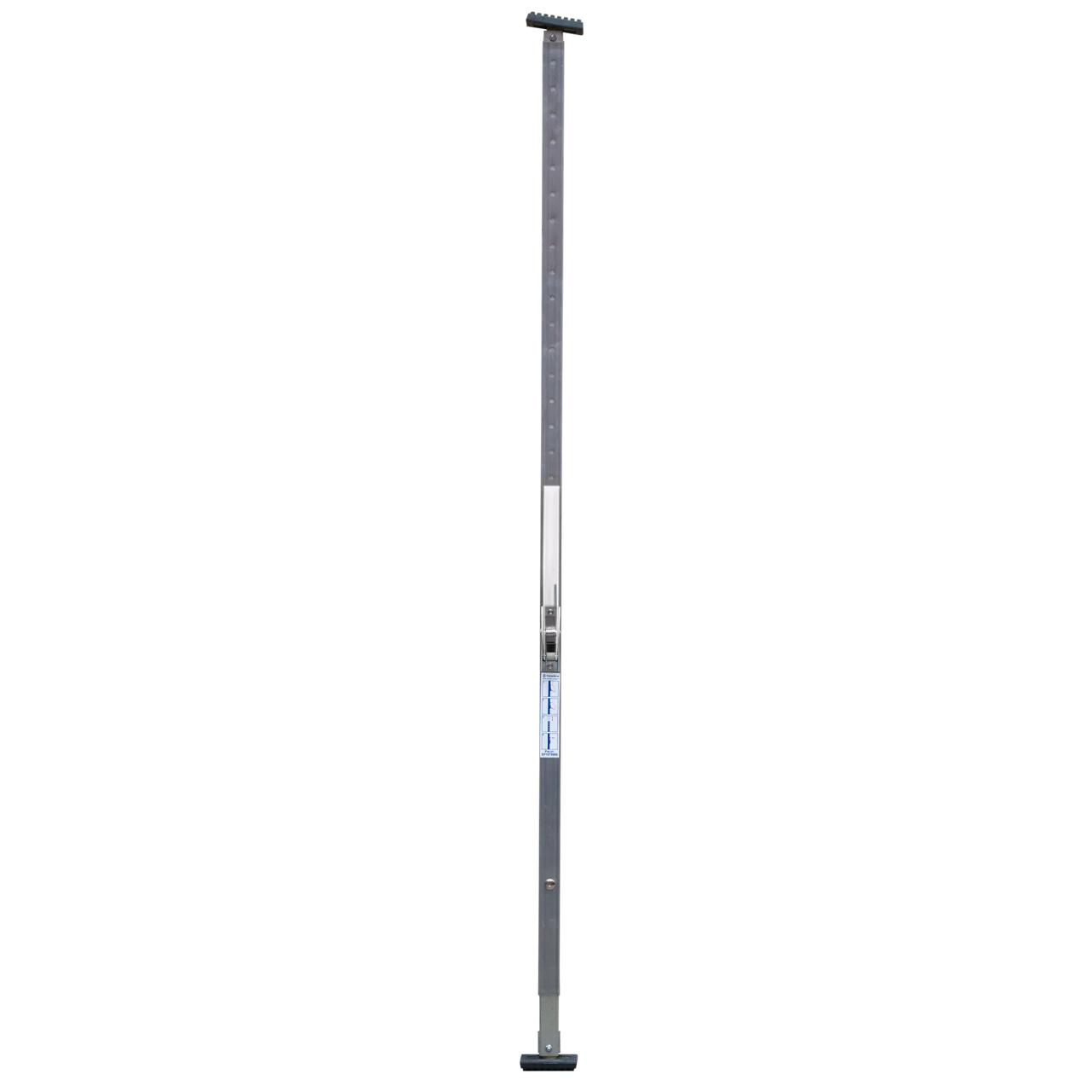Godsstötta med gasfjäder. Ingen utanpåliggande kuggstång eliminerar helt risken med klämskador vid inspänning och frigöring stöttan. Dessutom arbetar man snabbt och enkelt med gasstöttan. Längden på själva stöttan justeras en gång efter skåpets höjd och därefter fixeras stöttan på plats enbart genom aktivering av gasfjädern